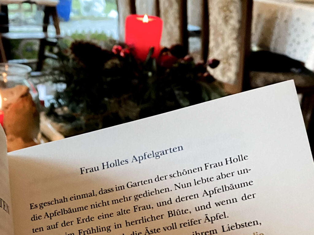 Zum Glück waren wir lange genug bei euch, sodass doch noch genug Zeit für diese gemeinsamen Momente blieb. Ich habe dir das Märchen von Frau Holles Apfelgarten vorgelesen. Schon lange habe ich dir nicht mehr vorgelesen und anfangs war ich nicht sicher, ob es dir überhaupt gefällt.